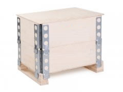 圍板箱:又名周轉(zhuǎn)箱,是一種包括托盤、箱體、箱蓋等部件的新型物流包裝容器,實木圍板箱箱體為套裝式并由一段以上的膠合板圍板組成,可循環(huán)重復(fù)使用。一般包括托盤、圍板、箱蓋三個組成部分,可根據(jù)產(chǎn)品高度需要,通過調(diào)整圍板類型和數(shù)量來調(diào)節(jié)箱體高度。